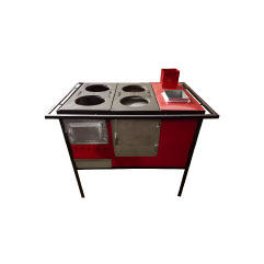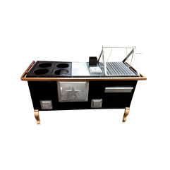 MATERIALES: Elaborada en lámina calibre 20, estructura en ángulo de 1 1/4 x 1/8 y ángulo de 3/4 x 1/8. – DIMENCIONES: Ancho 91cm, Alto 78cm, Fondo 62cm.
